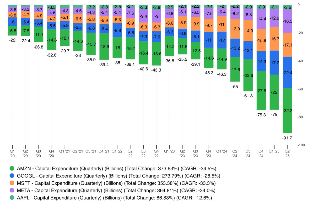 An important theme is the accelerating AI data centre spend which is now forecast to hit $1T by 2030. This wall of spending means more chips sold and higher earnings for our holding AMD. Its fast, low power silicon chips are built for AI inference (the number crunching behind real time answers). NVIDIA still dominates but it trades on a $4.2T market cap versus AMD on $260B. We believe the gap can close. AMD increased 30% in July and was the top contributor.